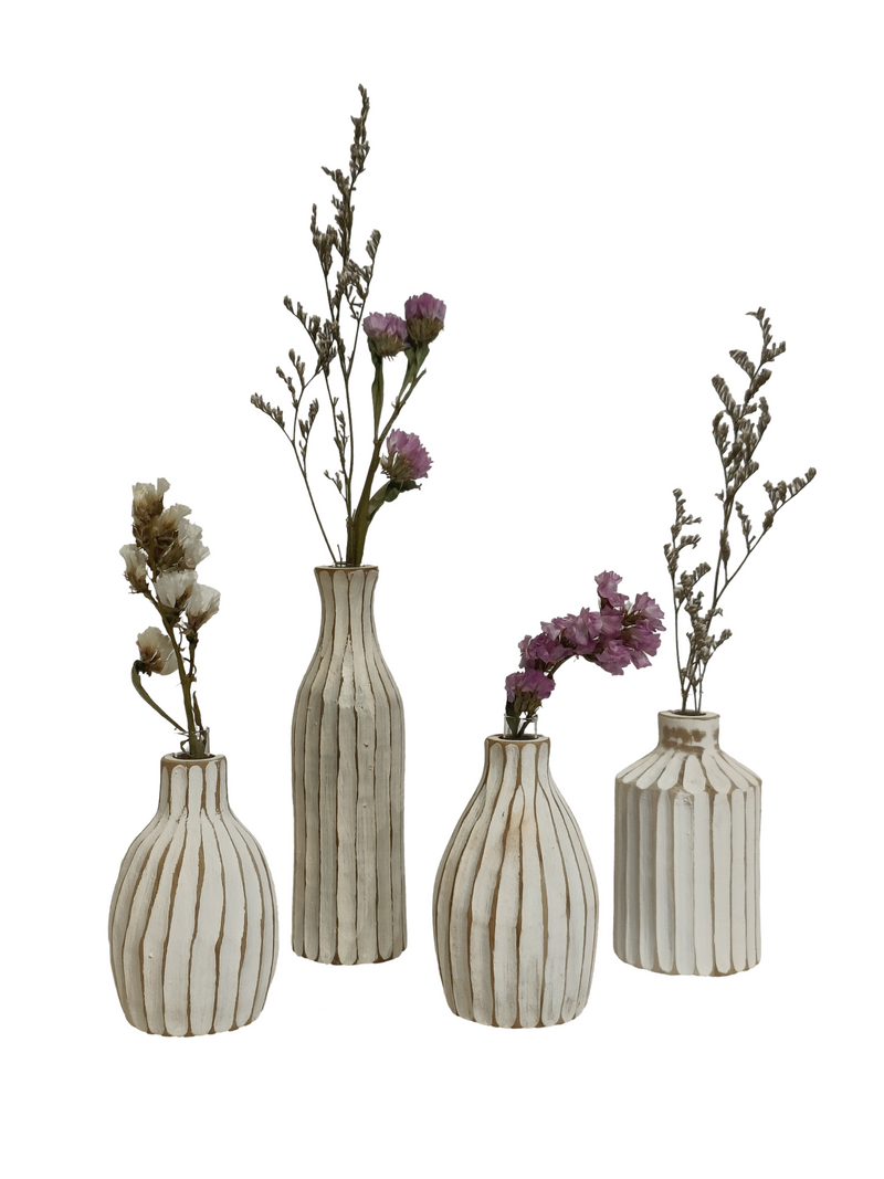 Mini Flower Vase Decor 2 - White (Teak Wood)