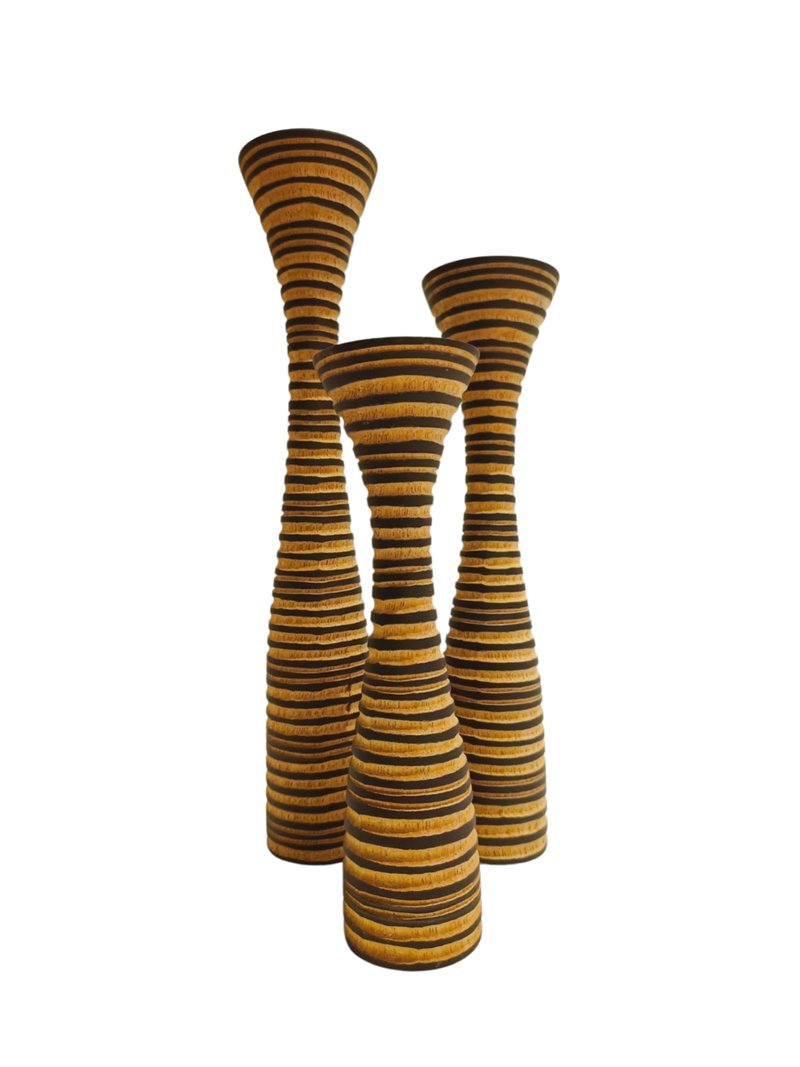Beautify your House, Living Room, Dining Area, Bathroom, or any areas look Cosy, Modern & Chic with these lovely Triple Candle Holder (Wooden/ Black Stripes)!