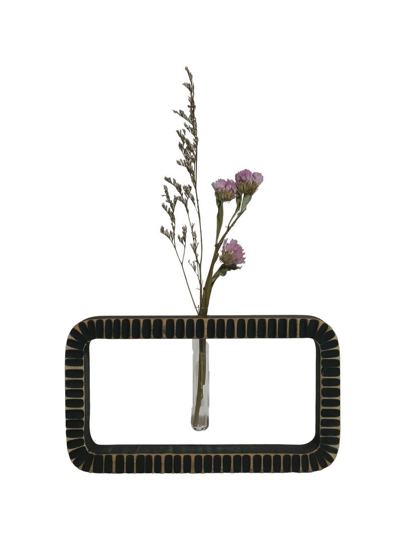 Wall Decor Flower Vase - Green (Teak Wood)